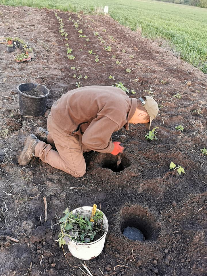 Sadzenie rozłogowo-pędowych sadzonek pokrzywy w specjalnie przygotowanym podłożu